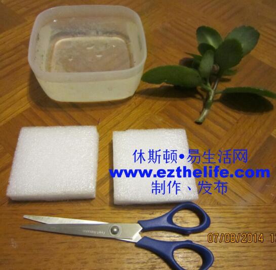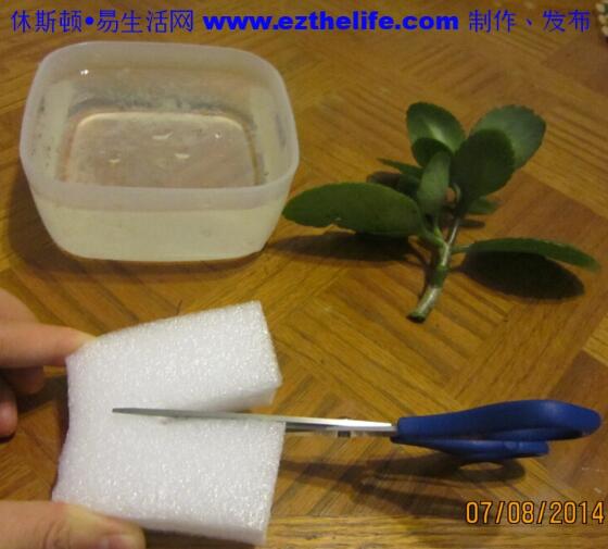 准备一个塑料泡沫,最好是我的那种,剪裁成正方形,大小要小于容器口,以便通风。