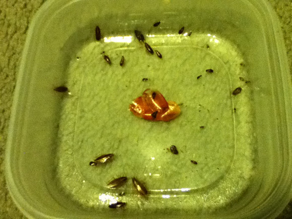 4,放入蟑螂经常出没的地方,关灯,等几小时回来收获并开水烫之