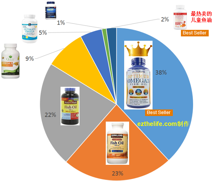 下图所示是华人购买鱼油排行榜榜首的鱼油以及销售比例。数据来自权威网站,本站做的统计分析和制图,是最有说服力的数据。