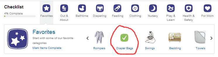 这是,列表中的Diaper Bags变成了绿色对勾,说明你家宝宝已经选好了尿布包了。看,多好啊,再也不怕什么东西忘了买了。
