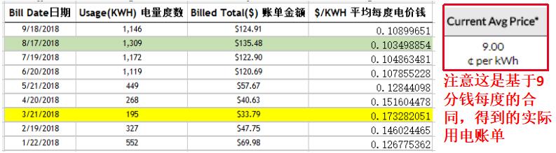 这家电力公司还是不错的,2018年选的是9分钱/度的合同,注意这是基于2000度电的价格,你实际上很难达到9分钱一度。