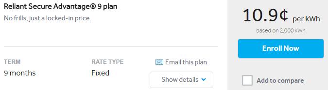 我的社会经验就是,当一件事情看着是如此美好的时候,请再思考一下。因此我去研究了一下Reliant电力公司,从网站上找到当前2018年最好的价格是10.9分钱/度(基于使用2000度电计算的!),而且还只是9个月的合同。其他的合同高达13.5分钱/度。远高于Cirro的9.8分钱/度 和三鹰的10.4分钱/度。
