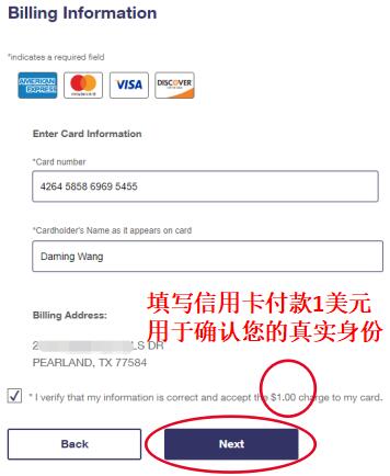 之后经过几个确认步骤后,即可付款完成注册。这里付款1美元,用于确认您的真实身份。