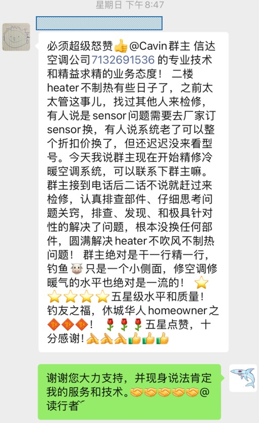欢迎联系 休斯顿信达空调(713-269-1536)。