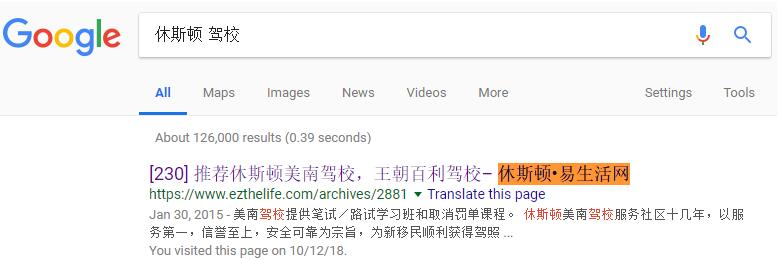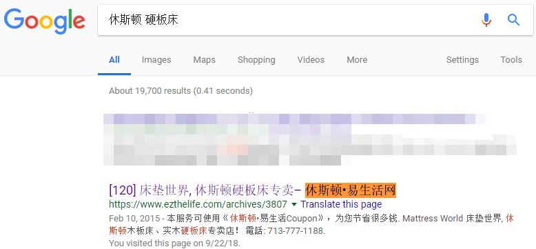 我站广告在Google搜索的首页首位或顶部位置实例: