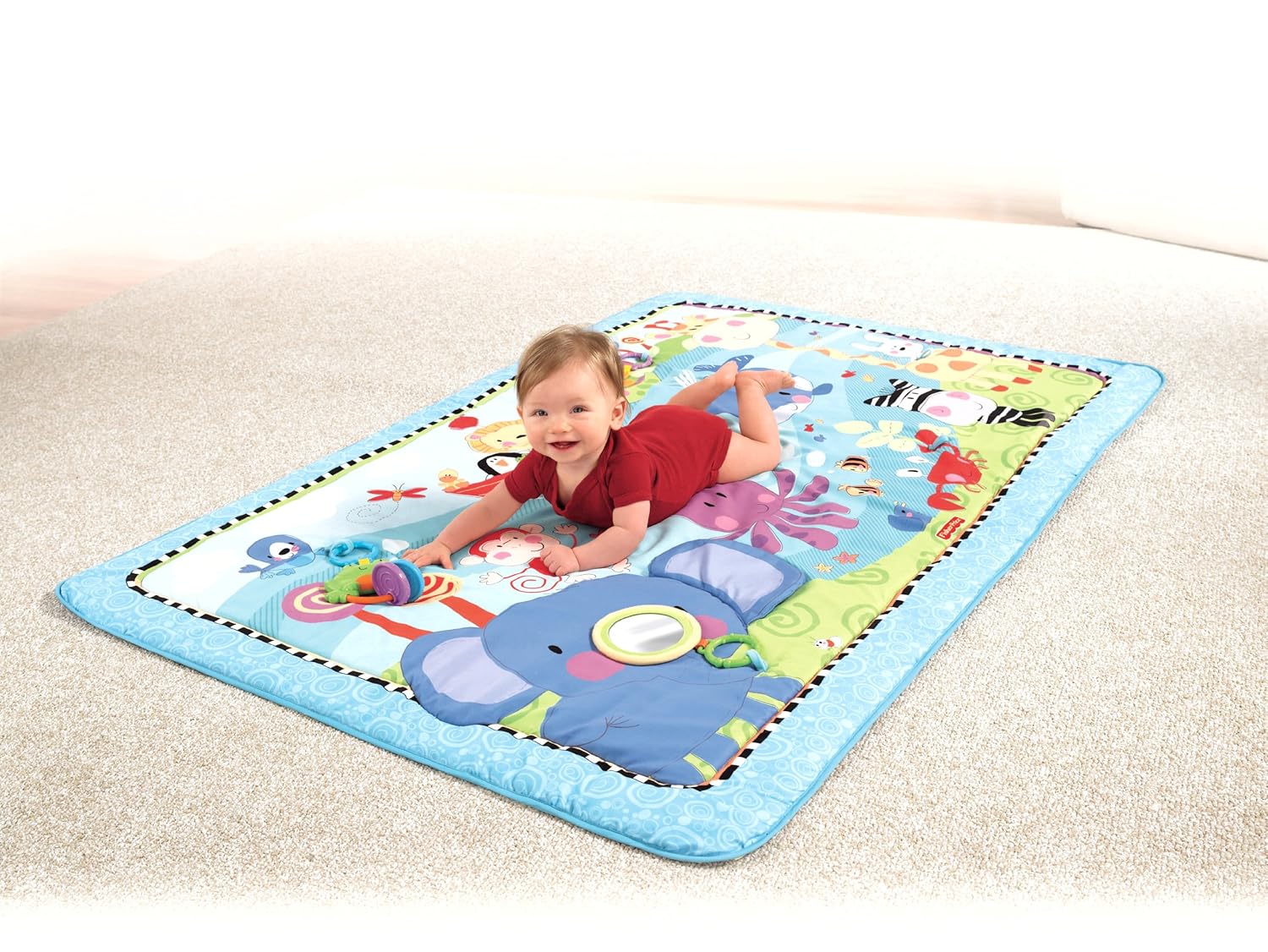 宝宝能开始翻身之后,可以看看费雪开发的这款Fisher-Price 电子琴训练毯 。宝宝可以趴下近处观察小镜子和各种挂件玩具;还可以仰躺着,看挂在上面的玩具动或者发声。一头的钢琴键玩具,还锻炼宝宝手脚运动能力~