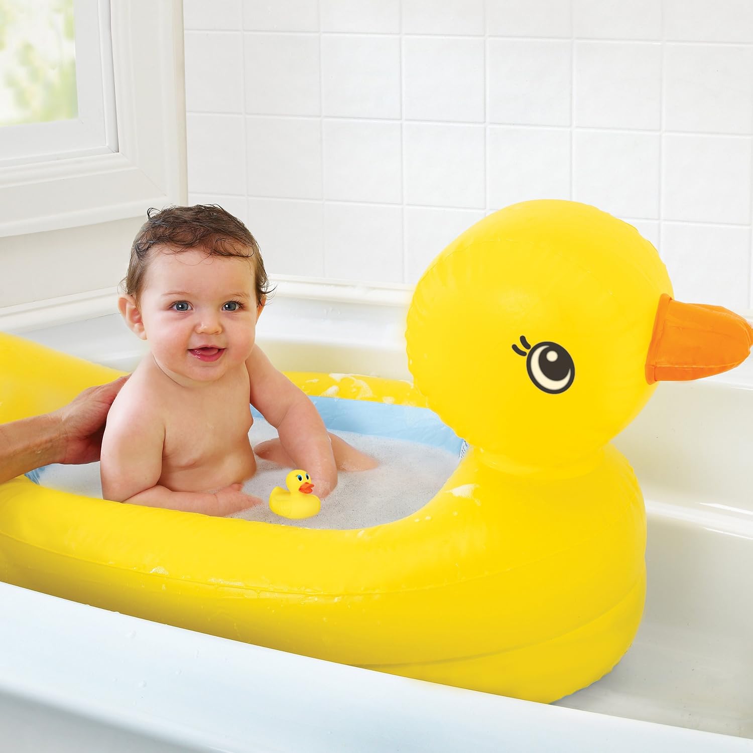 如果要外出旅行,可以选择Munchkin 便携的充气澡盆^^  , 除了充放气容易,外出易携带,还能智能识别水温,当水温过热的时候,安全指示标志“Hot”字样就会变白,给宝宝洗澡更安全~同时赠送一个橡皮小黄鸭,宝宝可以坐在有名的“大黄鸭”里面玩小黄鸭哈~~